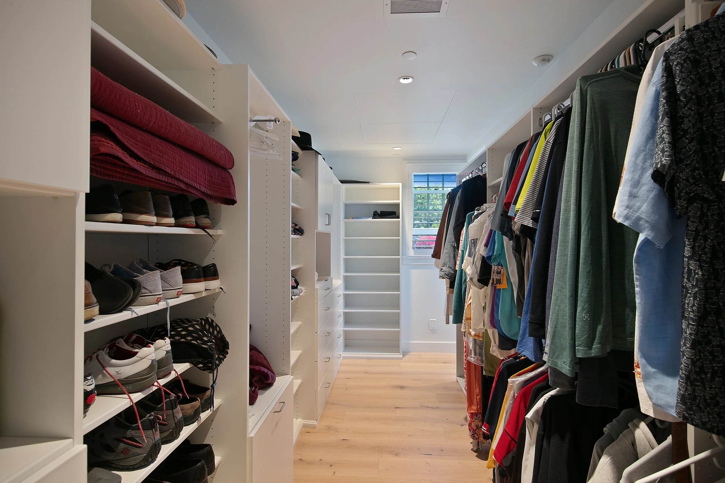Up the uber-stylish floating staircase, is the second level and primary bedroom. Boasting more vaulted white wood ceilings, light wood floors and a wrap-around veranda, this space is the perfect private ocean-viewing retreat. The huge bathroom makes the most of the abundant natural light, showcasing a separate elegant bathtub and glass shower, pristine fixtures and lighting. A large, well-appointed walk-through closet provides ample storage and display areas.